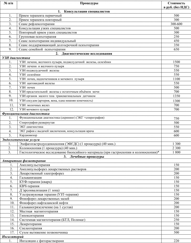 Цены на медицинские услуги в Alean Family Sputnik